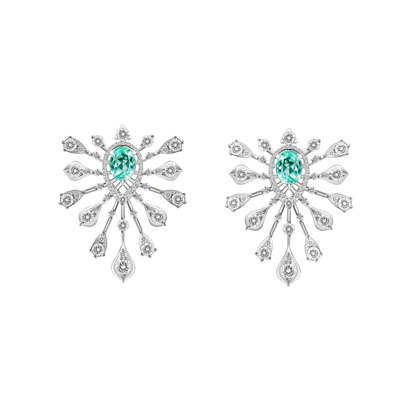 Paraiba tourmalines cut oval. Round-cut diamonds.