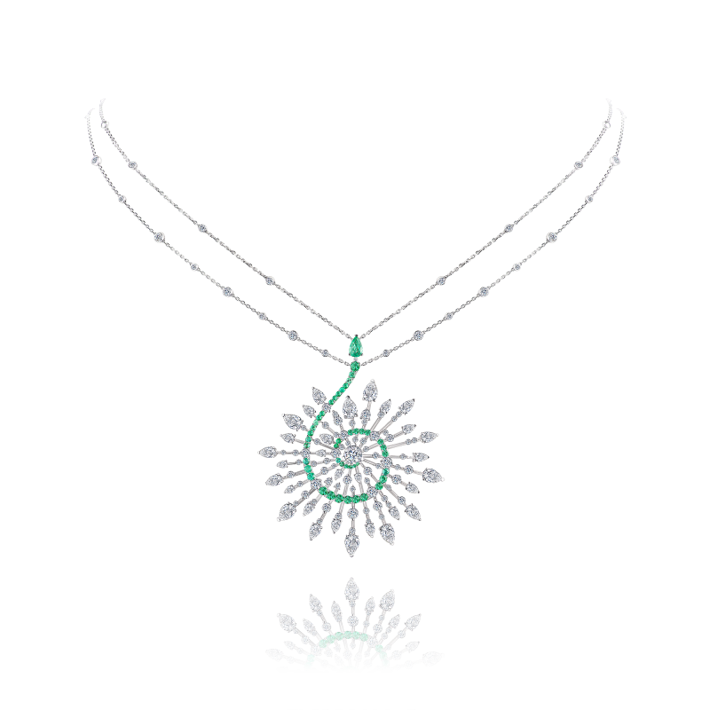 Necklace with emeralds and diamonds