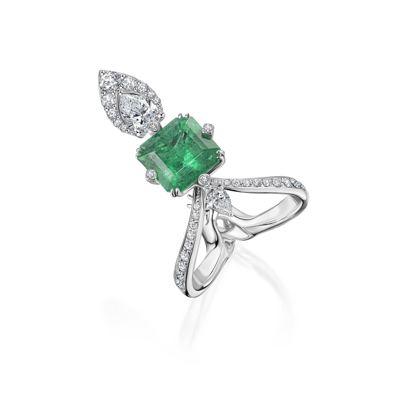 Emerald and diamond ring